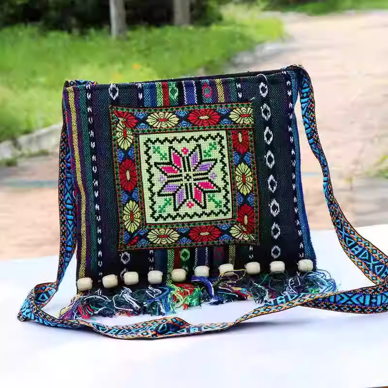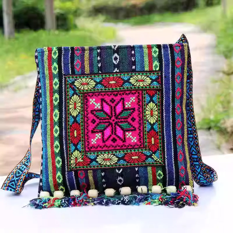 Tibetan Style Crossbody Bag – Colorful Ethnic Woven Design